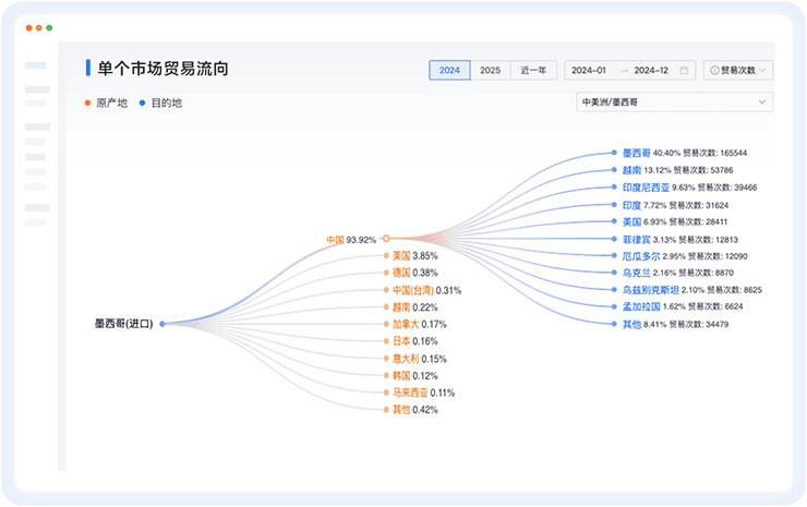 • 精准分析全球目标进出口国家的分布,进出口关单详情