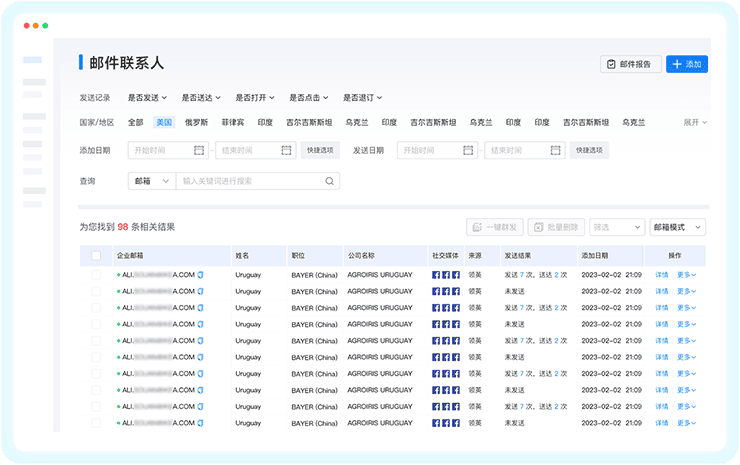 ballbet贝博外贸通智能生成点击、打开等发送效果可视化报表,随时改进跟进策略,避免客户流失;根据效果调整营销策略