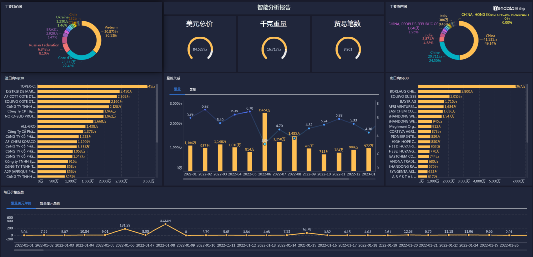 ballbet贝博外贸通能够一键查询和追踪某类产品的全球交易详情,并体现整个供应链的采购供应,最大程度展示整个贸易网的情况,基于交易数据的统计分析,多维度分析行业、产品市场趋势,助力企业洞察市场变化、把握不同市场采购淡旺季,从而准确定位目标市场。