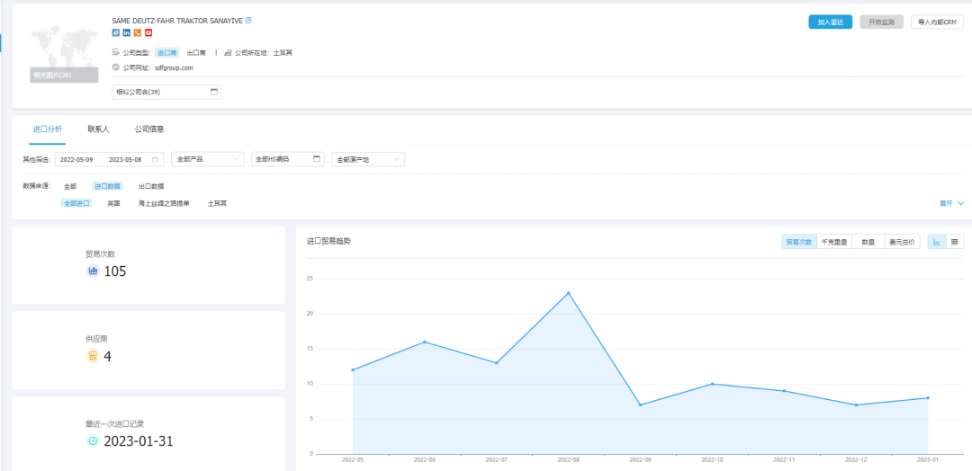 ballbet贝博外贸通可以清晰分析潜在客户的采购时间、采购对象、采购数量、采购价格、采购频率、采购关系,精准刻画客户画像,为开发和跟进客户给予决策依据。