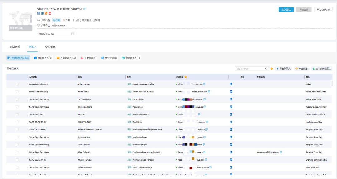 不用费时费力多渠道查找,ballbet贝博外贸通集合关键决策人的职务、邮箱、领英、Facebook等信息,可直接链接领英等世界主流社交媒体平台,帮助企业快速和目标对象建立联系,助力客户开发。